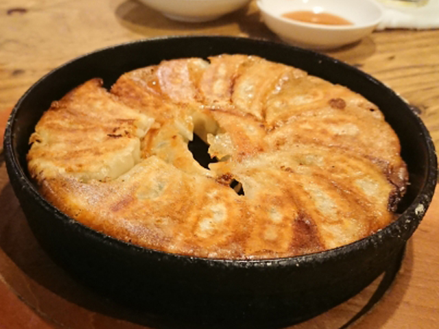 The appeal of iron pot gyoza is their bite-sized size and the piping hotness of the iron pot.